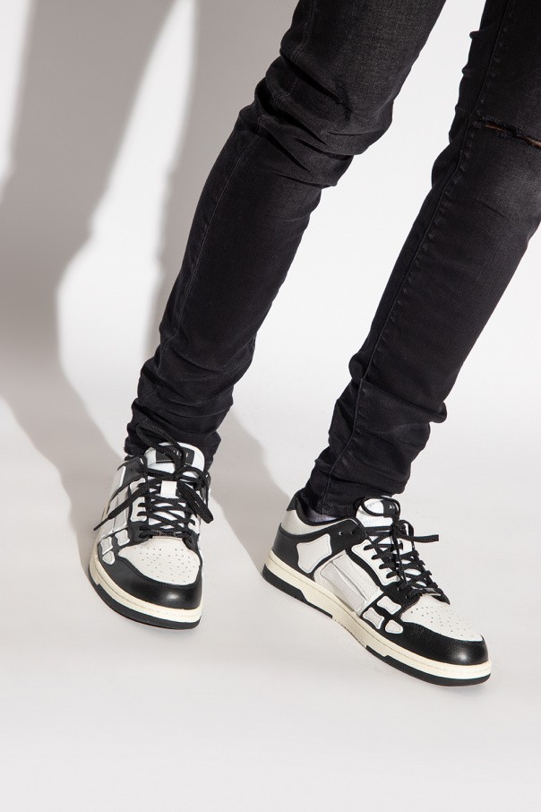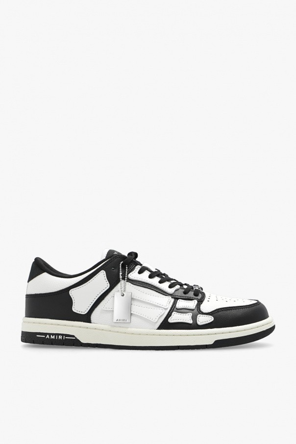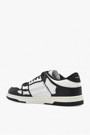 黑白两色低帮 Skel 运动鞋。 鞋身以手工切割,边缘绘有皮革骨骼贴饰。 圆形镂空鞋头,前部系带开合,饰有徽标饰牌,鞋舌和鞋领处有衬垫,鞋舌上有徽标贴饰,EVA 鞋底模压成型,与尺码一致。 颜色:黑色/白色。 鞋面: 皮革。 橡胶: 中国制造。