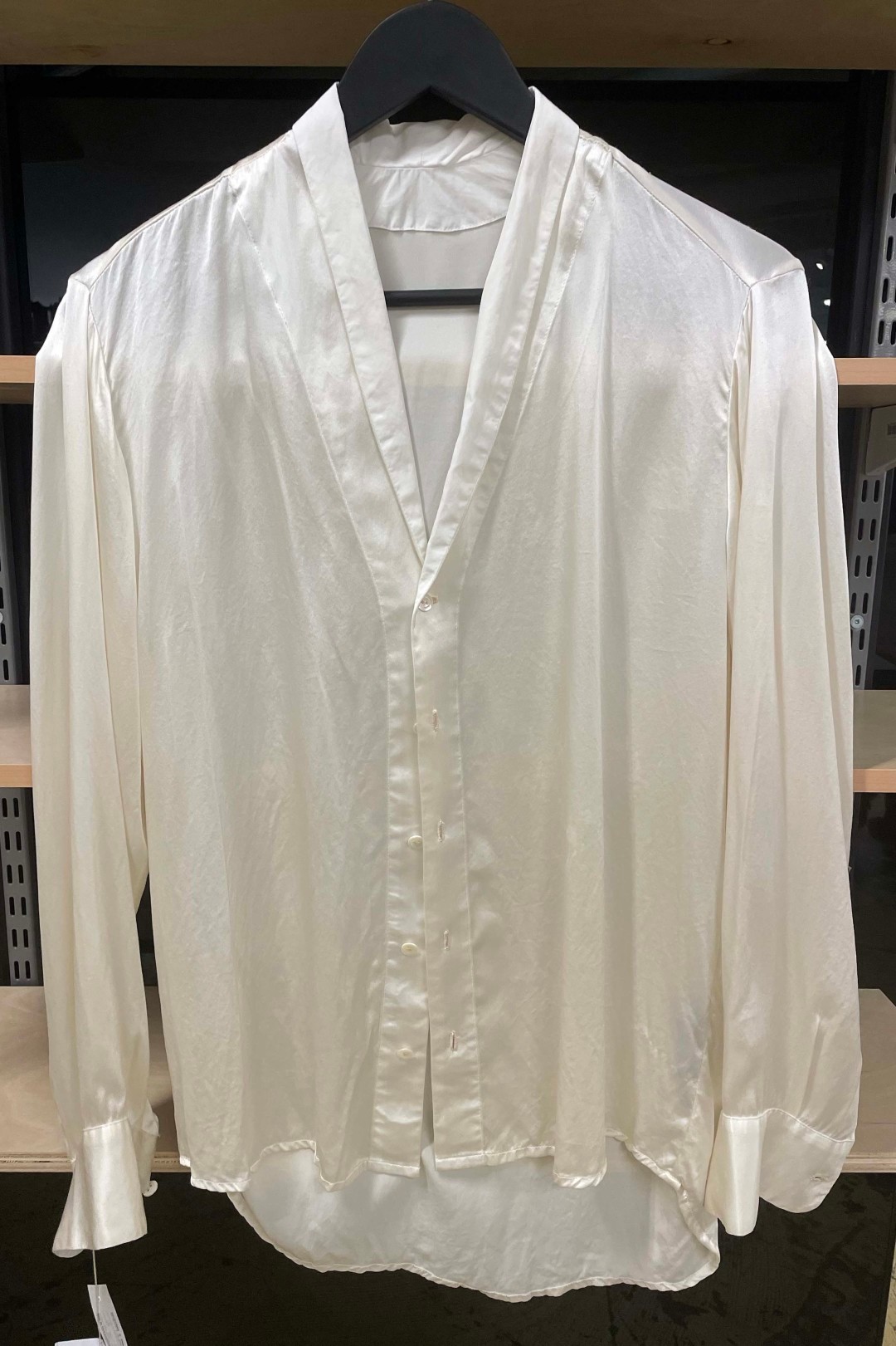 手工制作的披肩领丝绸衬衫,配有手工制作的扣眼和纽扣